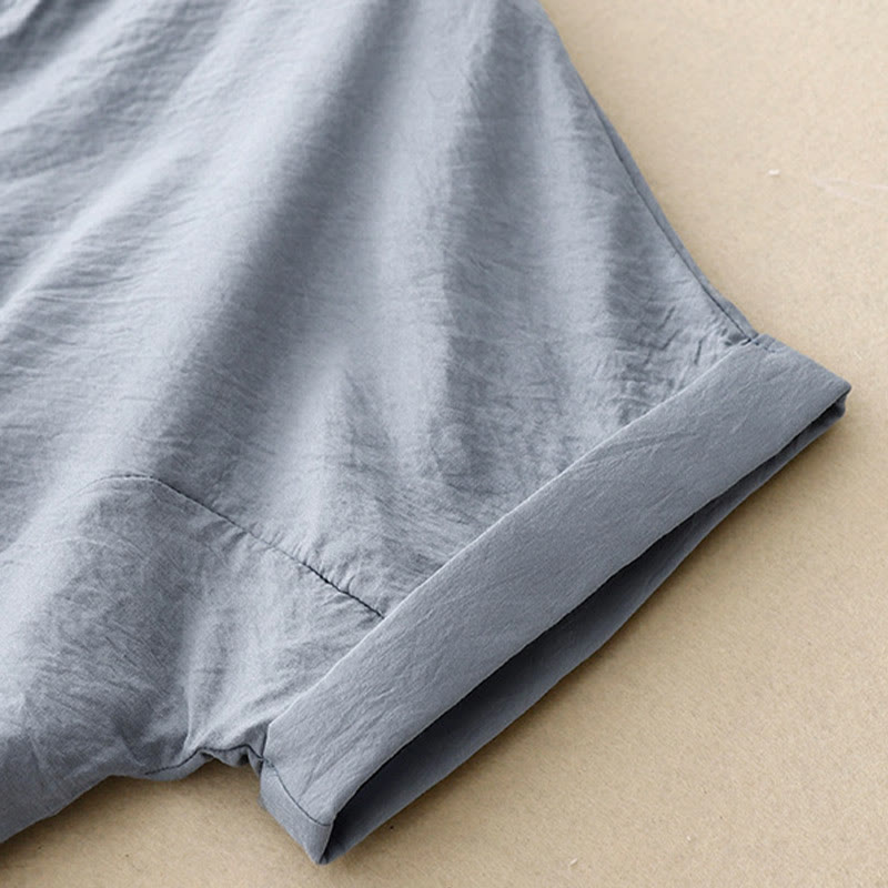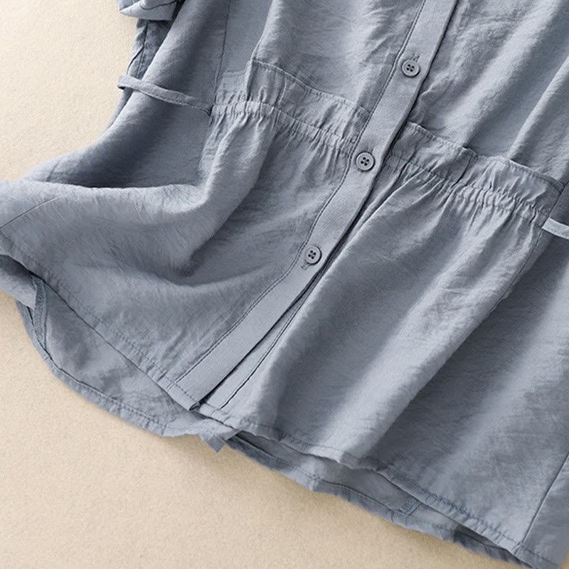 Camisa de algodón de manga corta con botones y cordones de verano para mujer con Buddha Stones