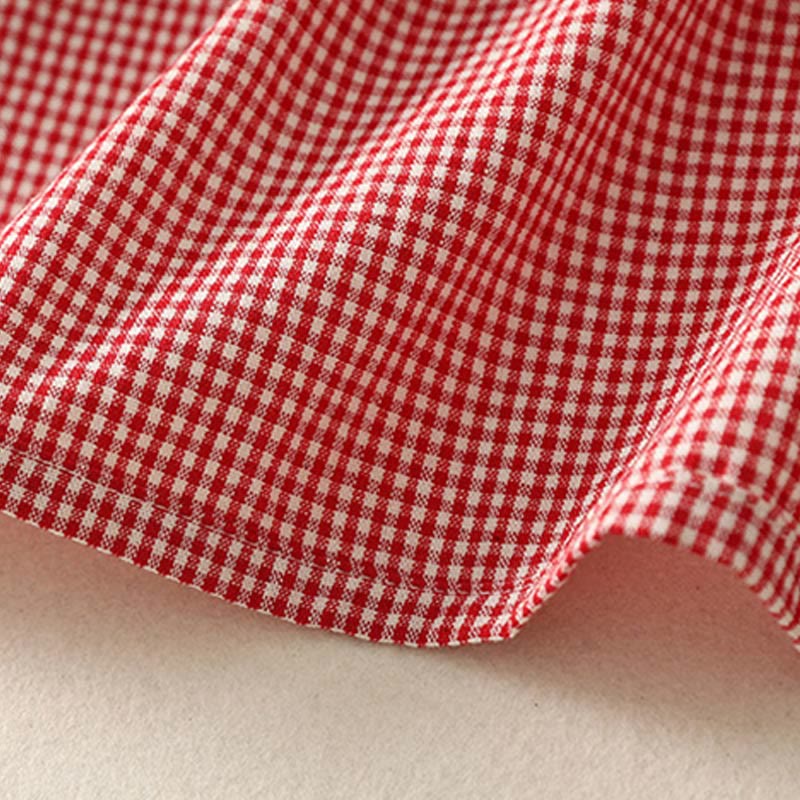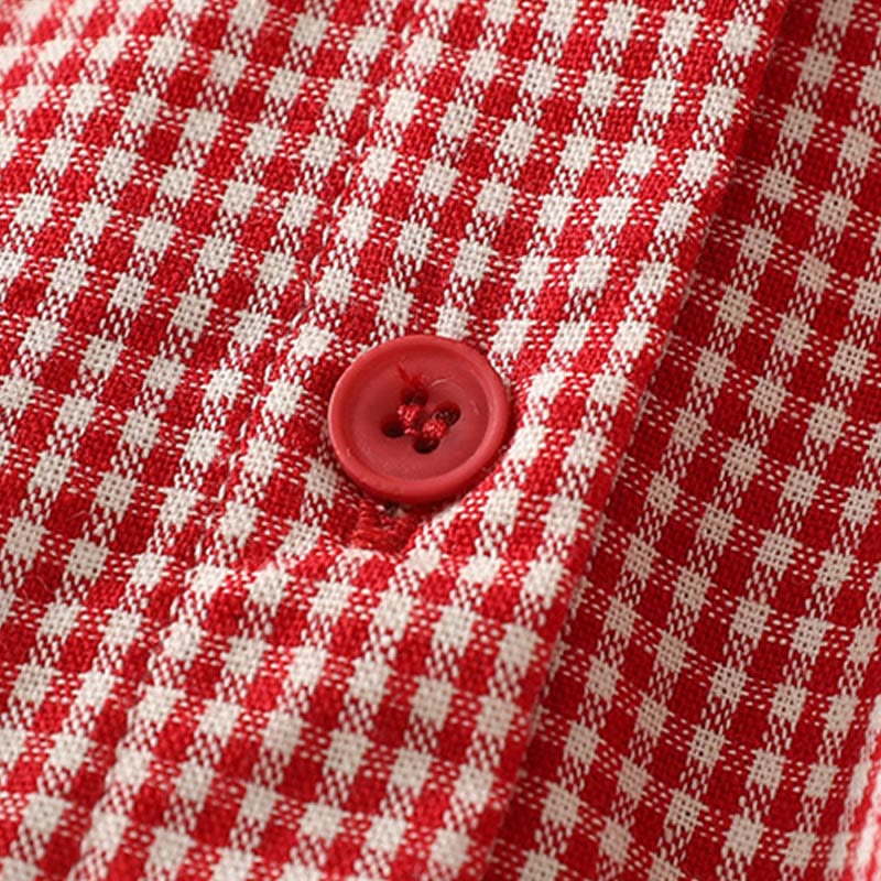 Camisa de algodón para mujer con cuello redondo, mangas tres cuartos y volantes a cuadros de Buddha Stones Spring