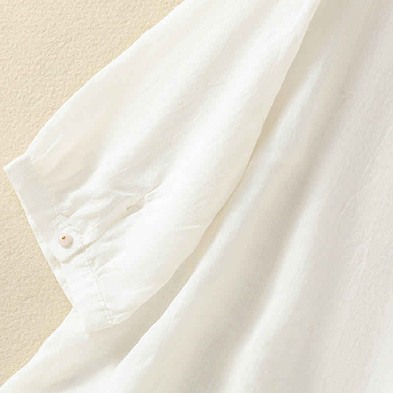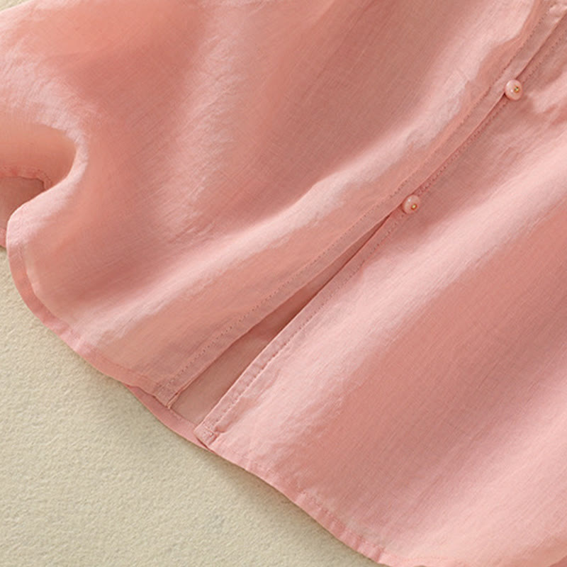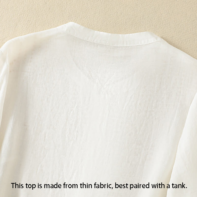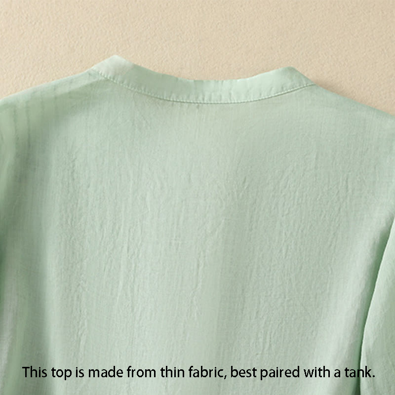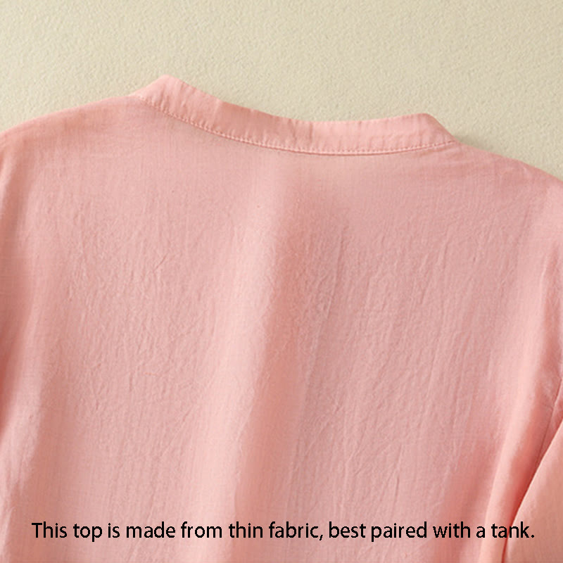 Camisa de algodón para mujer de media manga con botones y bordado floral de rosas y Buddha Stones - image 39