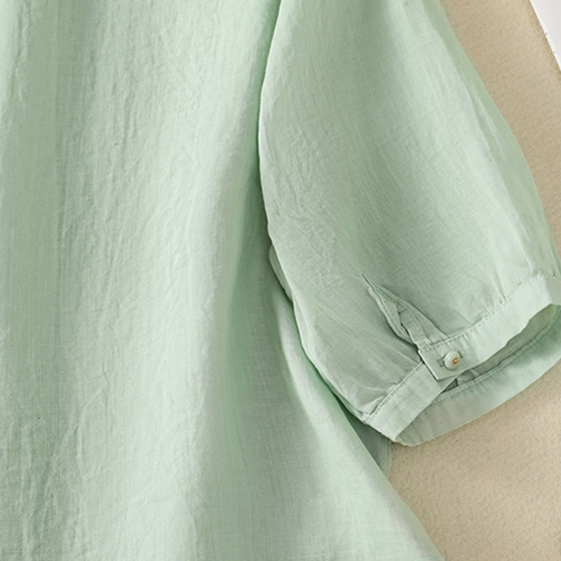 Camisa de algodón para mujer de media manga con botones y bordado floral de rosas y Buddha Stones