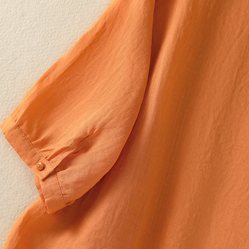Camisa de algodón para mujer de media manga con botones y bordado floral de rosas y Buddha Stones - Naranja - US14,UK/AU18,EU46 (2XL) - image 23