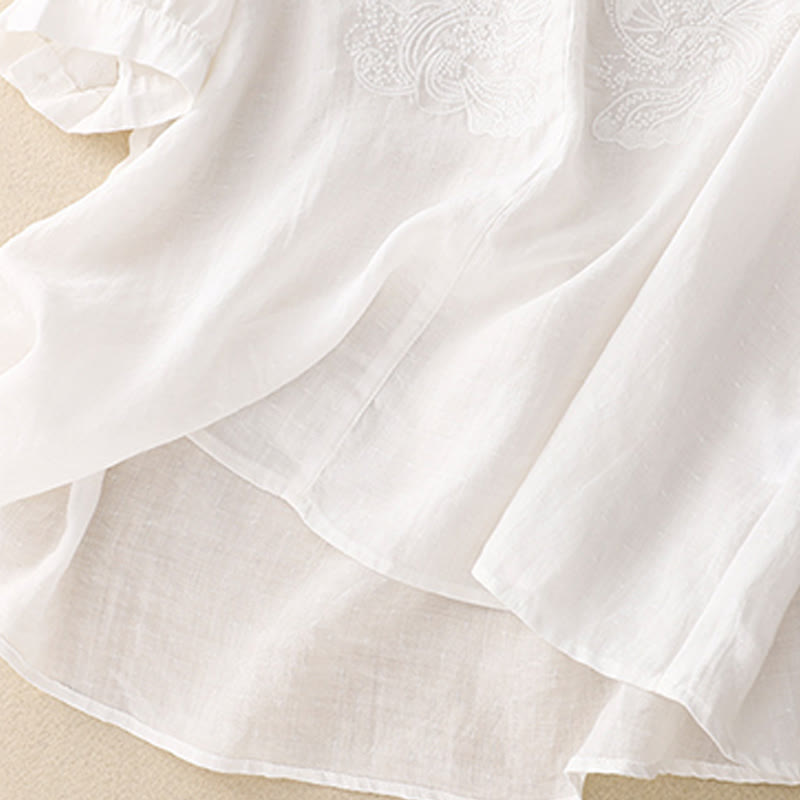 Camisa de media manga con cuello en V y mariposa de Buddha Stones para mujer - Blanco - US14,UK/AU18,EU46 (2XL) - image 6