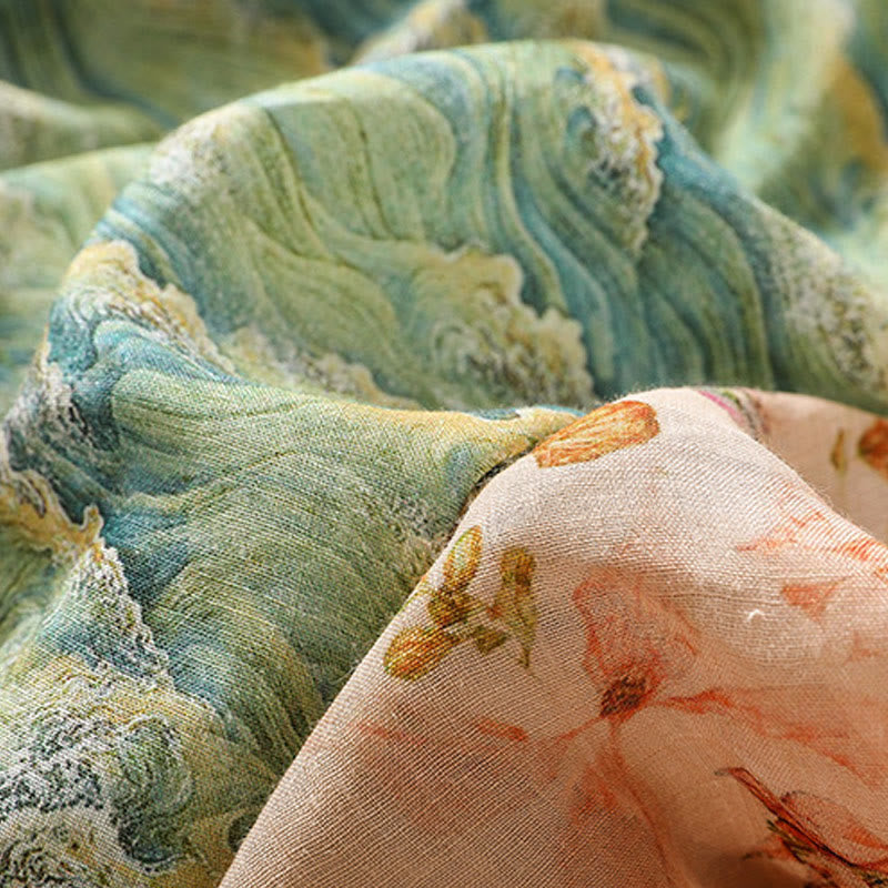 Camisa de manga larga de algodón y lino para mujer, con estampado informal de verano y botones de rana, con Buddha Stones