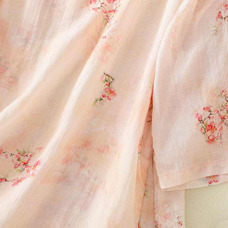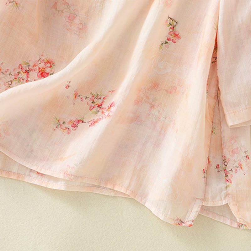 Camisa de poliéster de manga tres cuartos para mujer con cuello redondo, estampado de plantas y botones de rana, con Buddha Stones - MistyRose - US8-10,UK/AU12-14,EU40-42 (2XL) - image 8