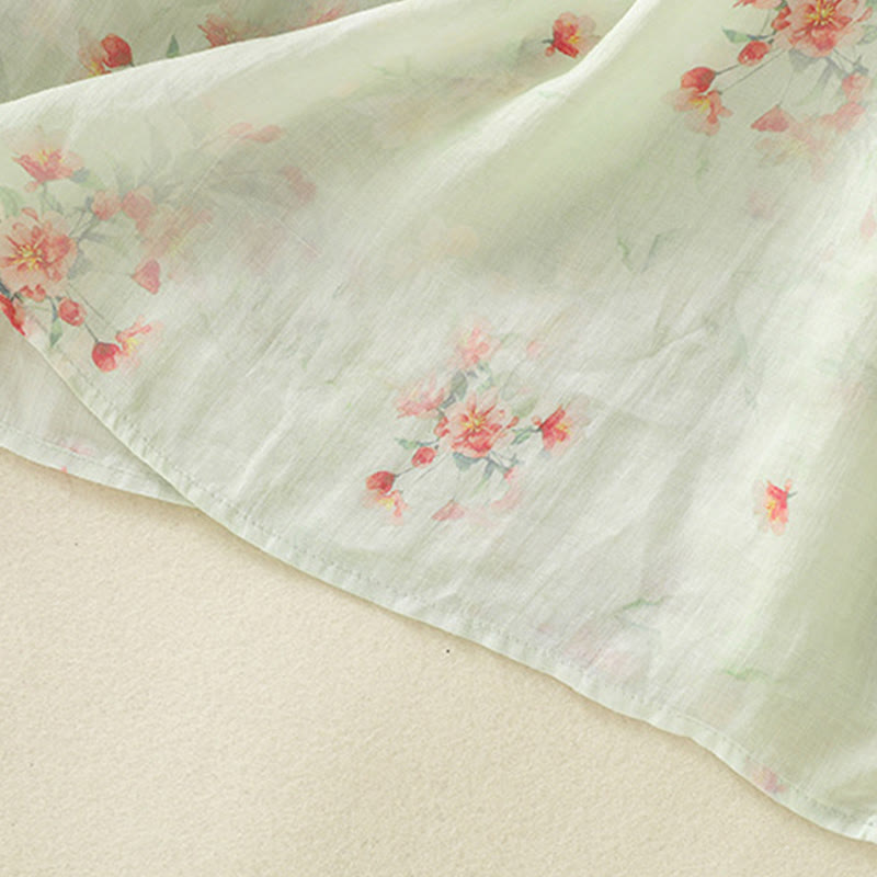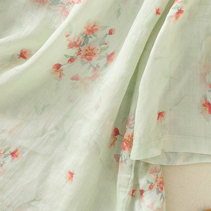 Camisa de poliéster de manga tres cuartos para mujer con cuello redondo, estampado de plantas y botones de rana, con Buddha Stones - image 10