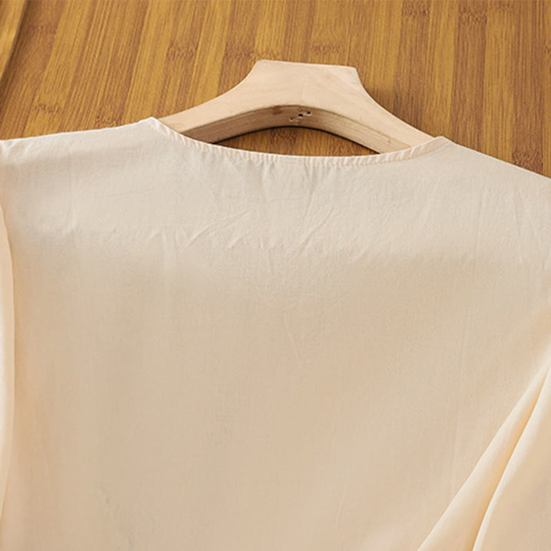 Camiseta de lino y algodón con bordado retro de Buddha Stones , con cordones, manga tres cuartos para mujer - image 10