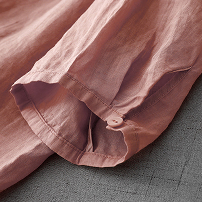 Cárdigan de algodón de media manga para mujer con diseño de botones delanteros bordados en colores puros y Buddha Stones - image 27