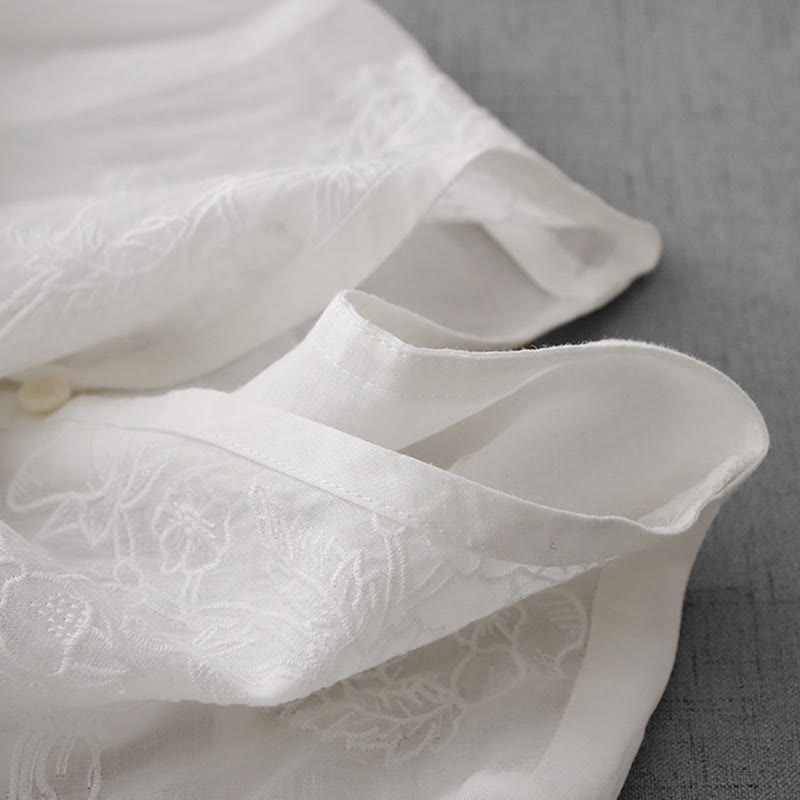 Cárdigan de algodón de media manga para mujer con diseño de botones delanteros bordados en colores puros y Buddha Stones - Blanco - US12, UK/AU16, EU44 (2XL) - image 11