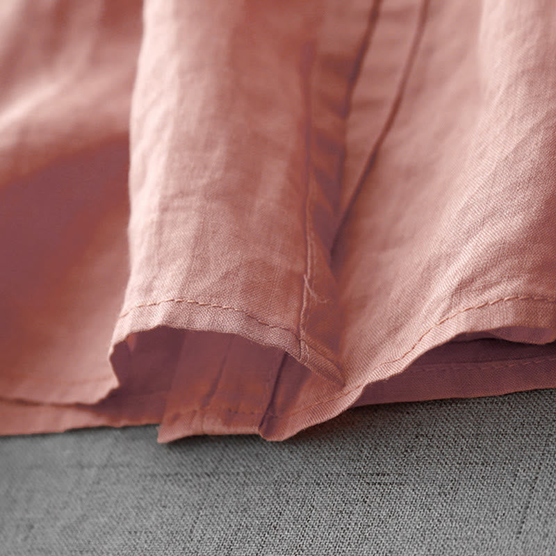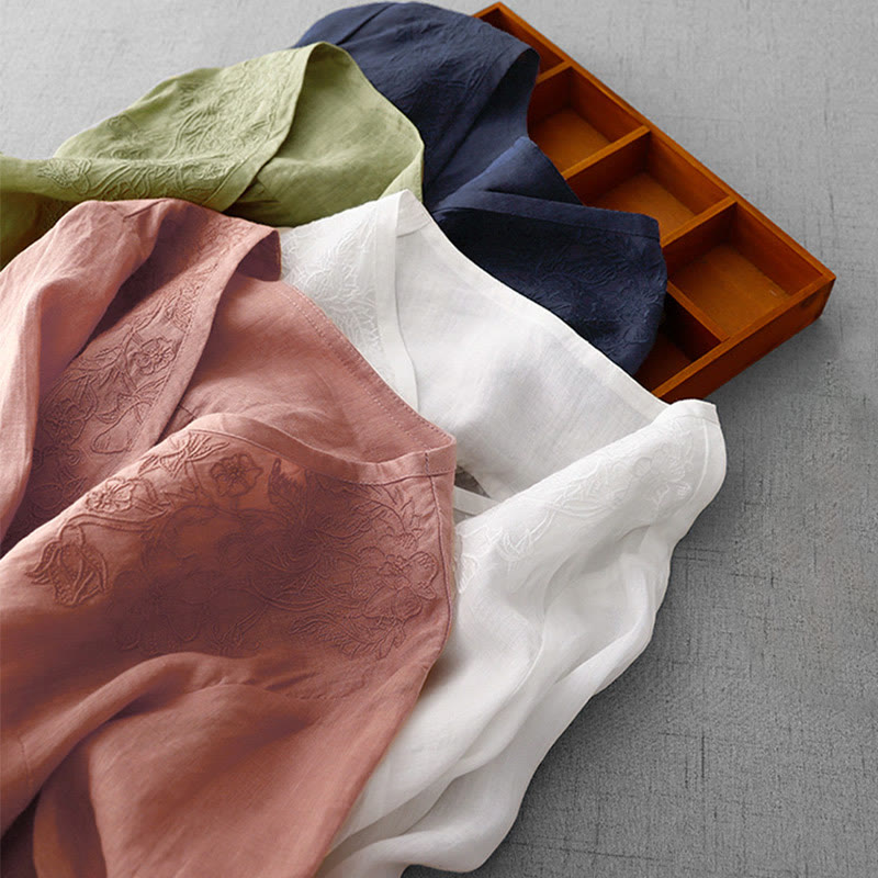 Cárdigan de algodón de media manga para mujer con diseño de botones delanteros bordados en colores puros y Buddha Stones