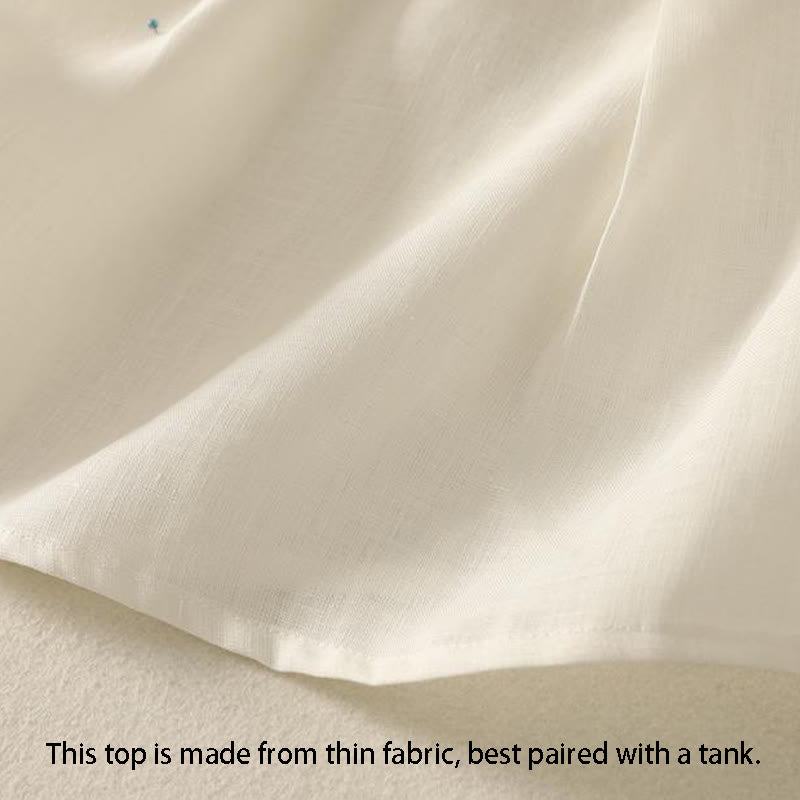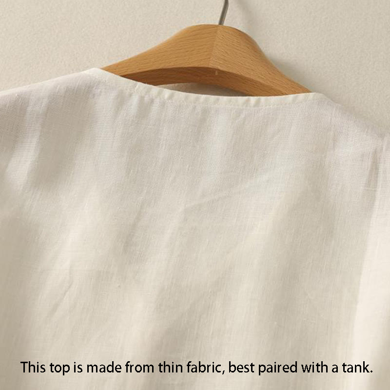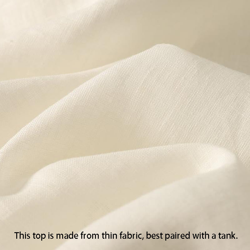- PD: Esta blusa está hecha de tela fina y queda mejor con una camiseta sin mangas.