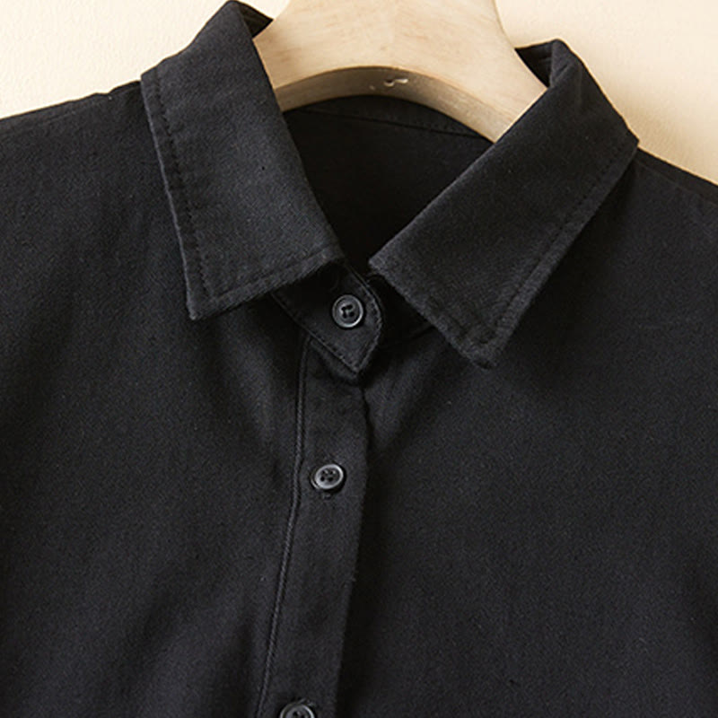 Chaqueta de lino y algodón de manga larga para mujer con solapa y bolsillos, diseño irregular de Buddha Stones Fall - image 13