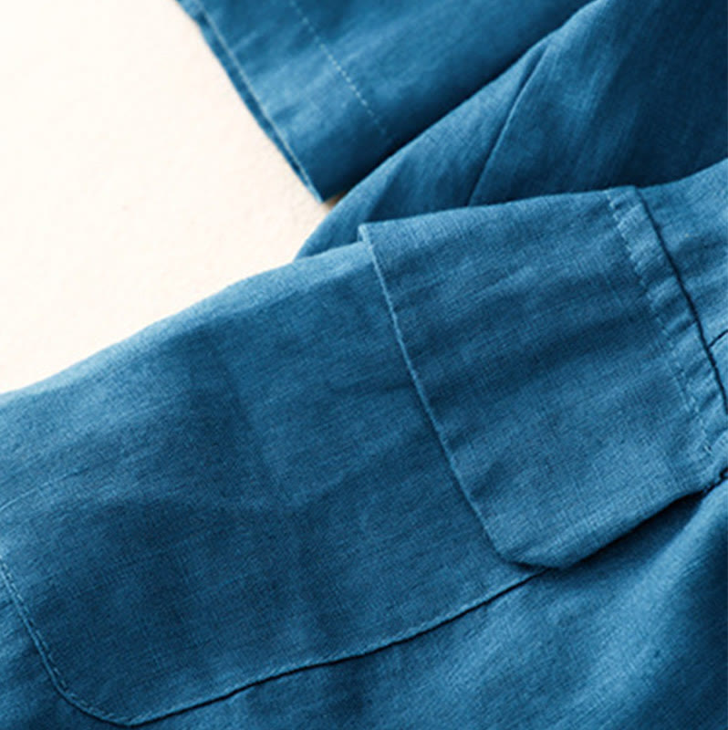 Chaqueta de traje pequeña de algodón con botones y bolsillos para mujer de Buddha Stones, manga tres cuartos - image 9