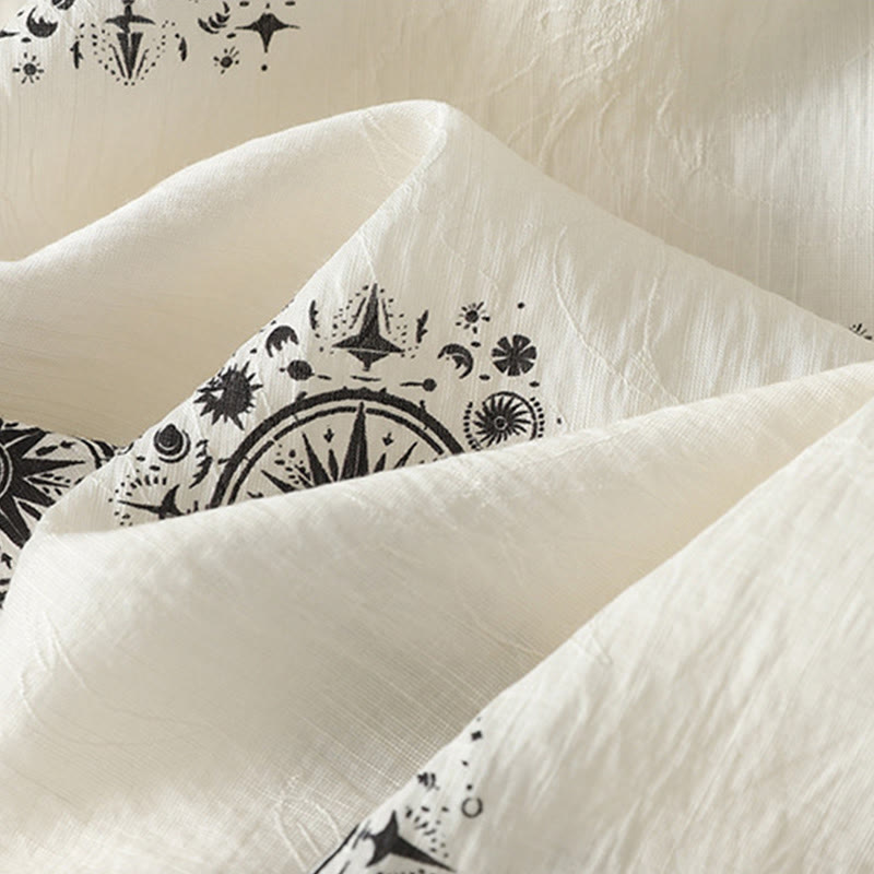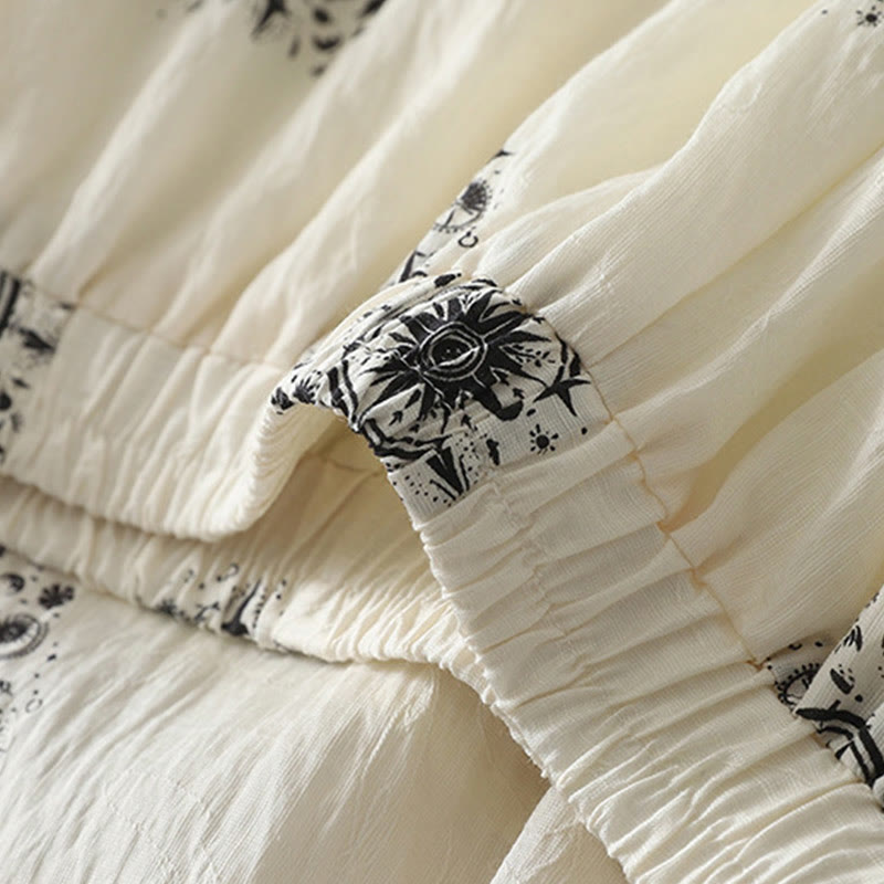 Pantalones anchos de algodón para mujer con estampado bohemio de Buddha Stones y patrón celestial con bolsillos