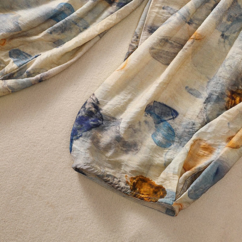 Pantalones casuales de poliéster con estampado floral de Buddha Stones para mujer, de longitud 7-8, con bolsillos - image 22