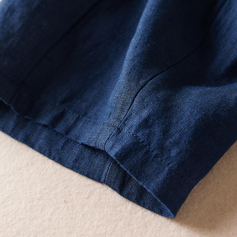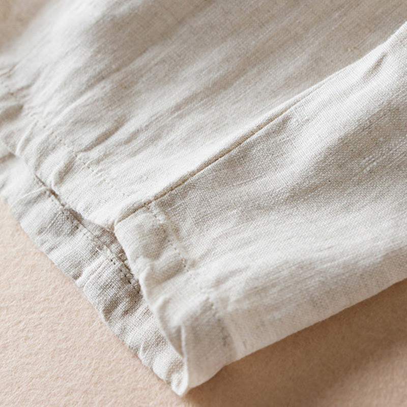Pantalones de lino y algodón para mujer, con bolsillos, de hilo de colores Buddha Stones , de longitud 7-8