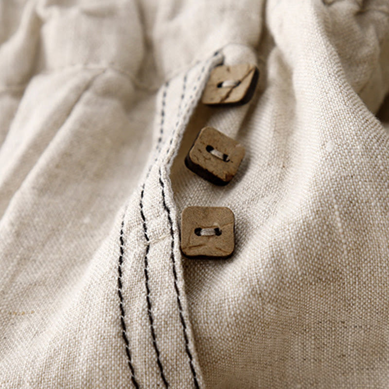 Pantalones harén de algodón para mujer con bolsillos y diseño informal de botones de colores puros Buddha Stones Commute, longitud 7-8 - Lino - US8-10,UK/AU12-14,EU40-42 (2XL) - image 3