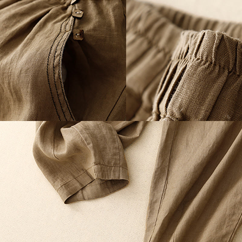 Pantalones harén de algodón para mujer con bolsillos y diseño informal de botones de colores puros Buddha Stones Commute, longitud 7-8 - image 13
