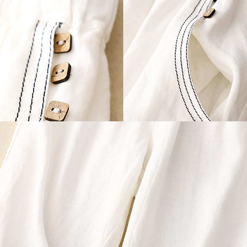 Pantalones harén de algodón para mujer con bolsillos y diseño informal de botones de colores puros Buddha Stones Commute, longitud 7-8 - Blanco - US8-10,UK/AU12-14,EU40-42 (2XL) - image 11