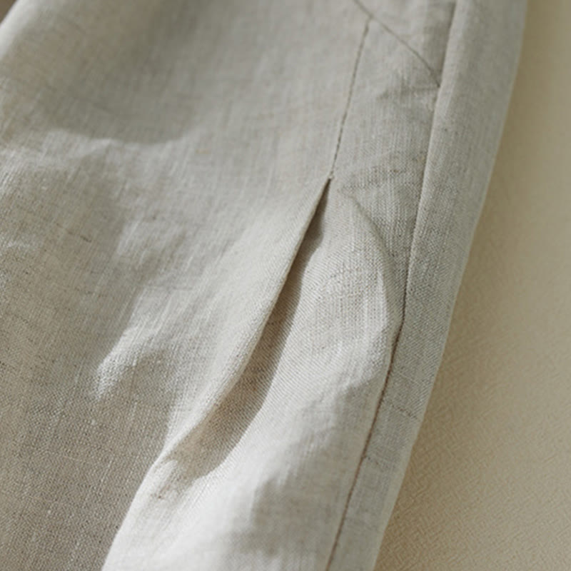 Pantalones harén de lino y algodón con cintura alta para mujer, de Buddha Stones Commute, con bolsillos