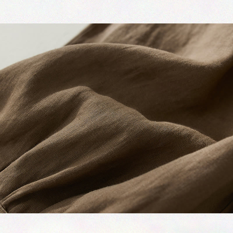 Pantalones harén de lino y algodón con cintura alta para mujer, de Buddha Stones Commute, con bolsillos - SaddleBrown - US8-10,UK/AU12-14,EU40-42 (2XL) - image 0