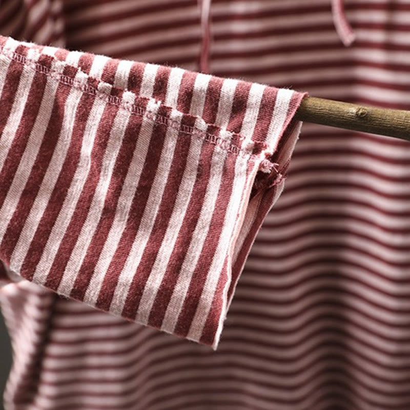 Sudadera con capucha de algodón de manga larga para mujer con estampado de rayas de primavera y Buddha Stones - Rojo oscuro - US4-8/10, UK/AU8-12/14, EU36-40/42 (F) - image 2