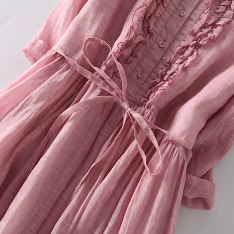 Vestido midi informal con volantes, manga corta, cordones y bolsillos para mujer de Buddha Stones - image 7