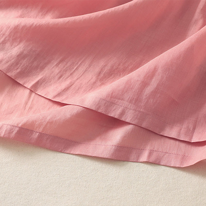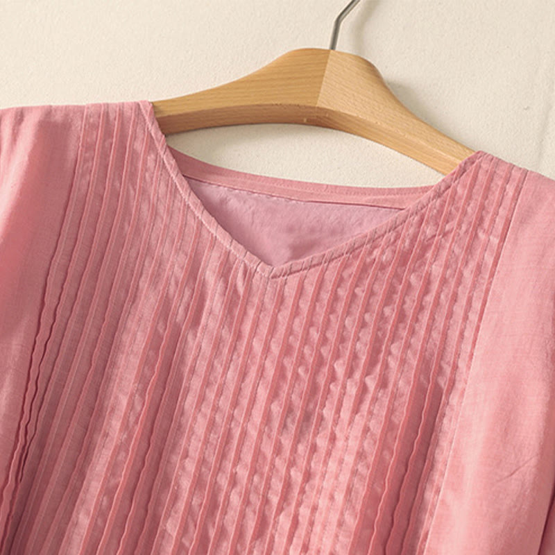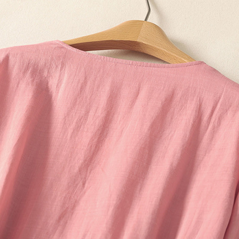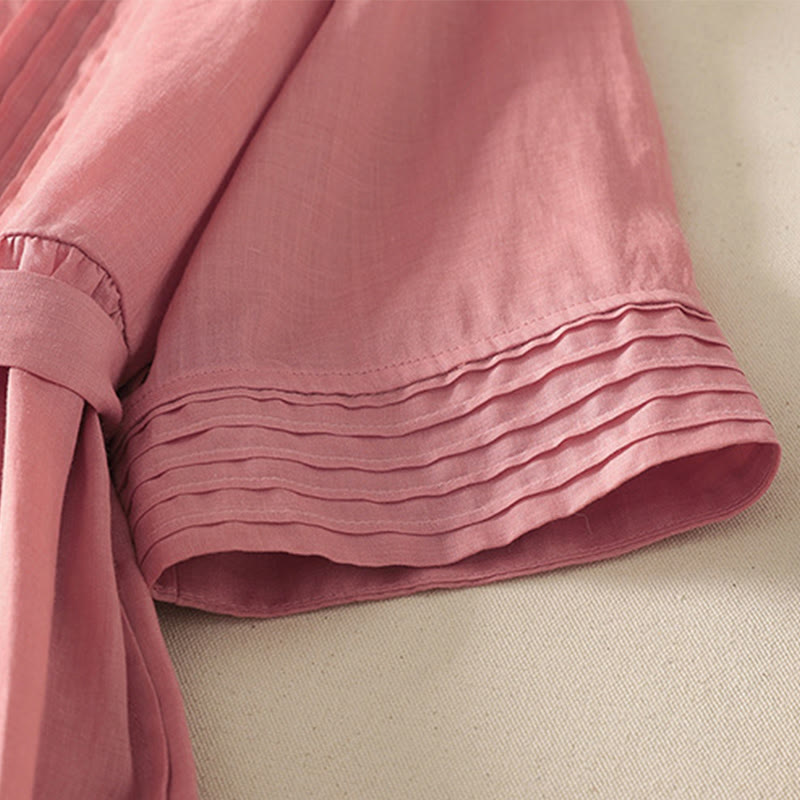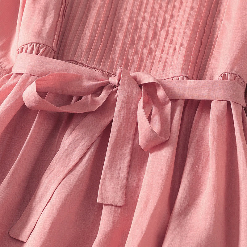 Vestido midi de lino y algodón con pliegues, de verano, de manga corta y con cordones, para mujer, con bolsillos, de Buddha Stones - MistyRose - US8-10,UK/AU12-14,EU40-42 (2XL) - image 0