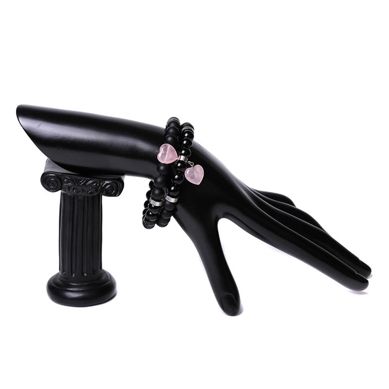Buddha Stones 2 piezas de piedra de cristal de ónix negro amor protección del corazón pulsera de pareja
