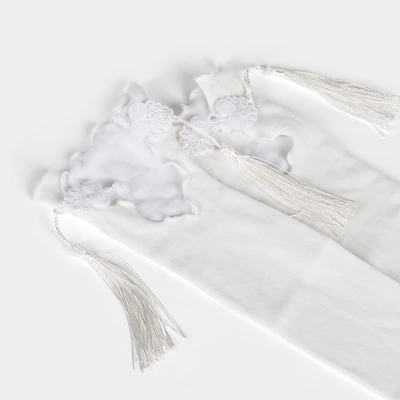 Calcetines de algodón para mujer con diseño de rana china, borlas y botones de color puro con Buddha Stones - Dos pares blancos - Talla única (US4. 4-9, UE 34-39, UK/ AU 2,5-6, Asia 22-24,5 cm) - image 6