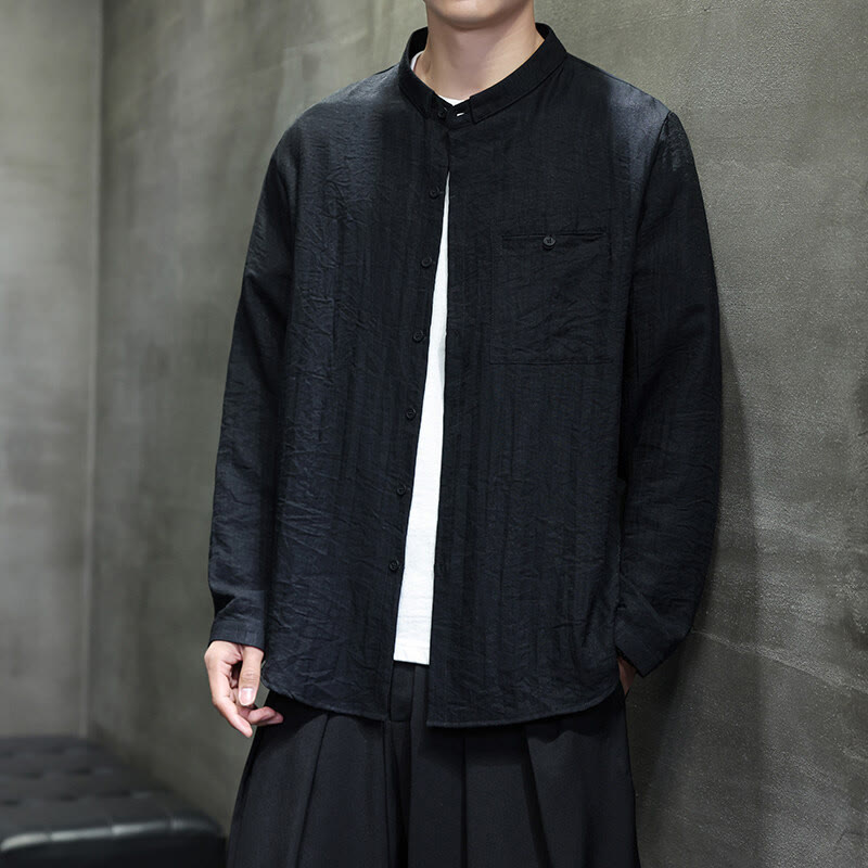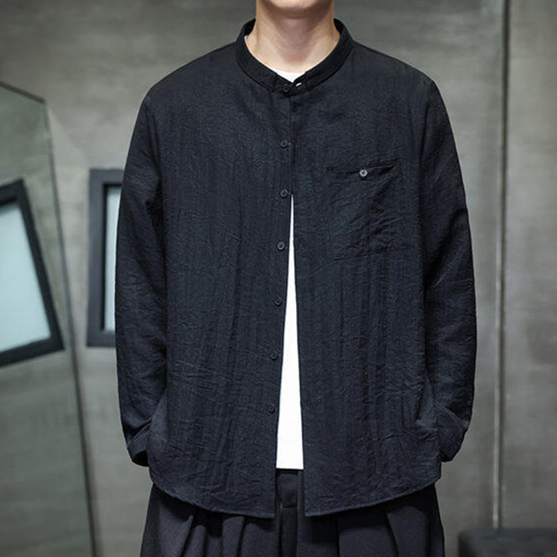 Camisa de manga larga con botones de color liso para hombre con estampado de Buddha Stones Spring - Negro - US/UK/AU46, EU56 (5XL) - image 0