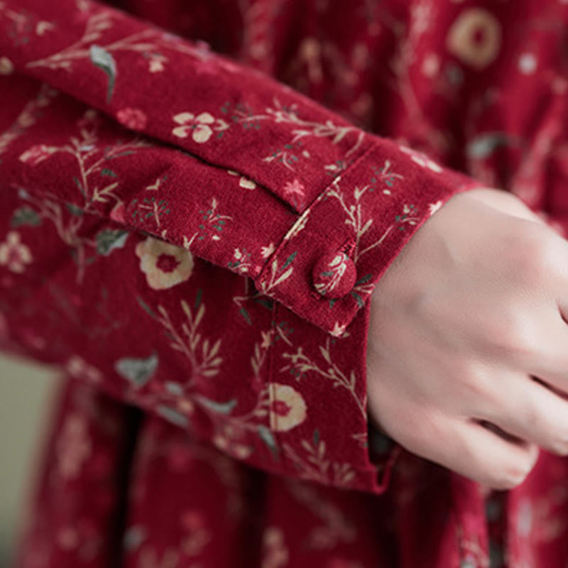 Vestido midi de lino y algodón con estampado étnico de Buddha Stones, manga larga, cordón ajustable y bolsillos - Carmesí - US8-10,UK/AU12-14,EU40-42 (2XL) - image 6