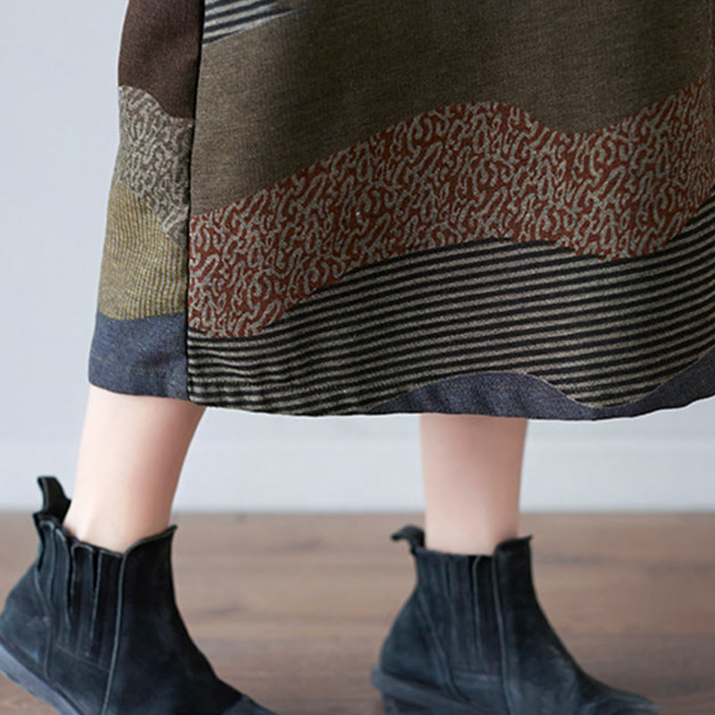 Vestido midi de lino y algodón de manga larga con estampado étnico a rayas y Buddha Stones , con bolsillos