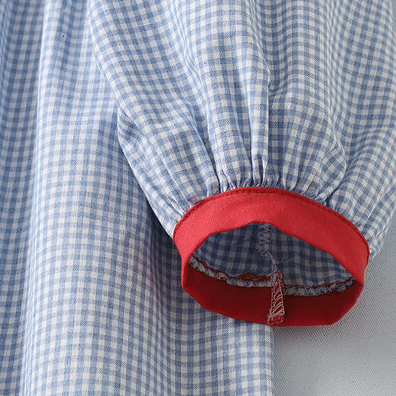 Vestido midi informal de lino y algodón con mangas largas tipo farol y estampado a cuadros con Buddha Stones y bolsillos