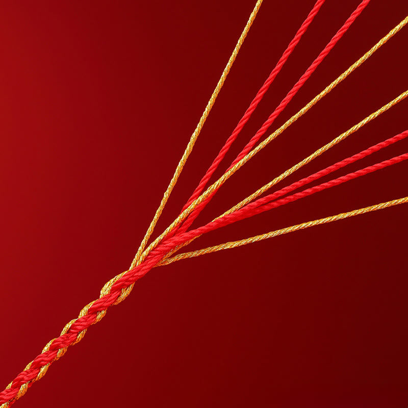 En los linajes del budismo vajrayana tibetano, es común atar un cordón o cuerda alrededor de la muñeca durante las ceremonias. Tradicionalmente, el lama bendice el cordón, hace un nudo y lo impregna con un mantra. Al igual que en otras tradiciones, se dice que estos cordones rojos traen suerte y ofrecen protección. En una antigua leyenda china, el Hilo Rojo del Destino es invisible y une a todos aquellos cuyas vidas se entrelazarán. Está regido por el dios chino del matrimonio, Yue Lao, ya que se asocia principalmente con el vínculo entre dos personas destinadas a casarse. A lo largo de la historia y en diferentes filosofías, el cordón rojo se ha usado para protección, fe, buena suerte, fuerza y conexión.