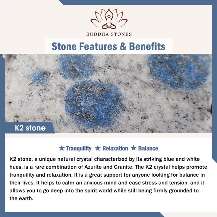 - Material: Ojo de tigre azul, aguamarina, amatista, ojo de tigre verde, ojo de tigre morado, obsidiana, ojo de tigre rojo, lazurita, cianita, jade, piedra K2, zoisita rubí, turmalina, apatita, piedra de mica morada, lepidolita, sodalita, jaspe de puntos azules, turmalina de flor de ciruelo, amazonita, lazurita