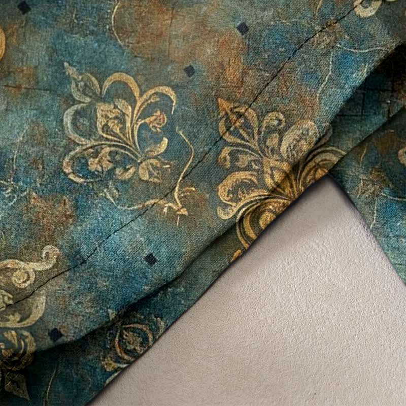 - Diseño : El elegante estampado damasco, con un acabado vintage desgastado, evoca la rica tradición del arte decorativo europeo y oriental. Los motivos simétricos y ornamentados simbolizan prosperidad, nobleza y elegancia atemporal, mientras que la textura degradada con efecto desgastado transmite una sensación de historia y nostalgia artística. Este diseño clásico confiere a la prenda una estética sofisticada y bohemia, que representa la armonía entre tradición y estilo moderno.