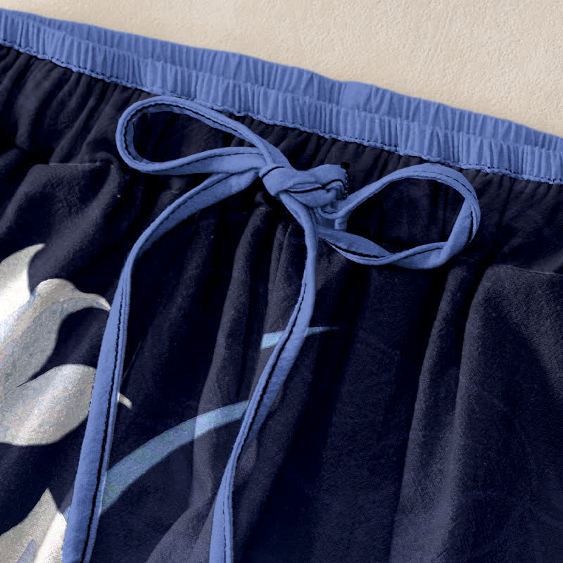 Buddha Stones Pantalones de mujer de algodón puro con estampado de lirios, cintura elástica, cordón ajustable y bolsillos. - Azul real - US16,UK/AU20,EU48 (3XL) - image 0