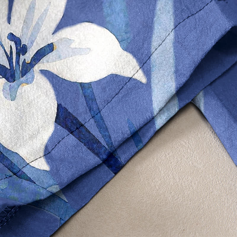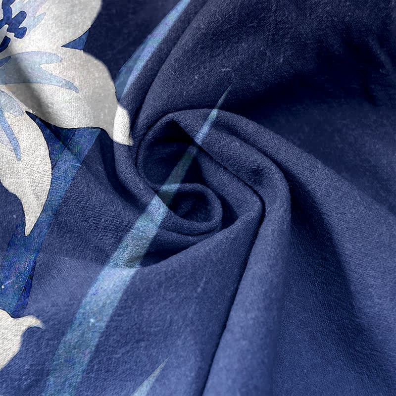 • Diseño : Este estampado presenta motivos de lirios, que simbolizan pureza, renovación y elegancia natural. Refleja una sensación de gracia y sofisticación discreta a través de su composición floral. El diseño aporta una atmósfera fresca y serena, inspirada en la belleza atemporal de los lirios.