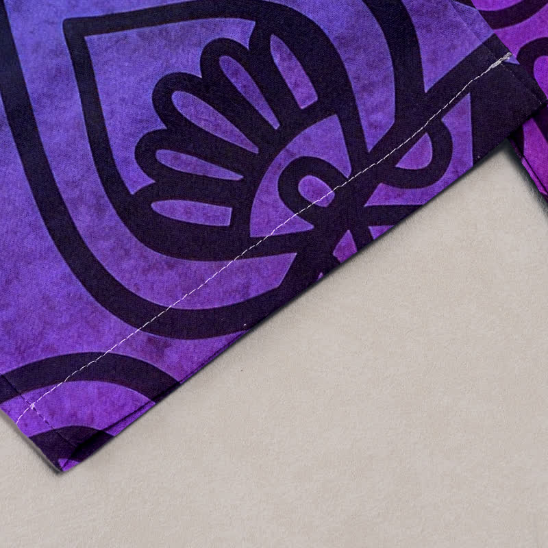 - Diseño : Los llamativos motivos de mandala, sobre un fondo degradado teñido a mano, encarnan un profundo simbolismo espiritual oriental. El mandala representa la armonía cósmica, el equilibrio espiritual y la paz interior, mientras que su diseño simétrico e intrincado simboliza la plenitud y la interconexión de toda la vida. La transición de color en degradado evoca la transformación y el crecimiento espiritual, infundiendo a la prenda una energía bohemia de inspiración zen que irradia calma y positividad.