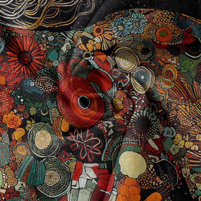 - Diseño : El majestuoso motivo del caballo, entrelazado con una exuberante variedad de vibrantes flores, posee un profundo significado simbólico en las culturas orientales y bohemias. El caballo encarna la libertad, la fuerza, el viaje espiritual y la vitalidad desbordante, mientras que las abundantes flores representan la prosperidad, el crecimiento, la belleza y la vitalidad de la vida. Este intrincado estampado artístico teje una narrativa de armonía entre poder y gracia, infundiendo a la prenda una energía audaz y estimulante, así como una rica estética bohemia y cultural.