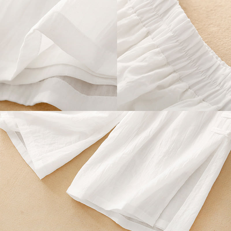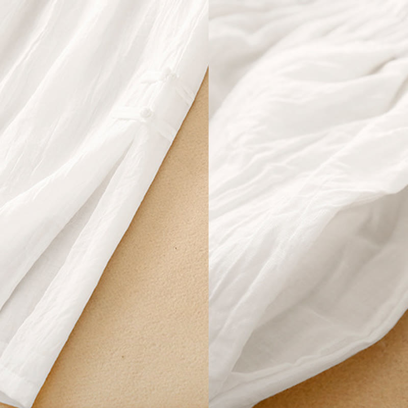 Pantalones anchos de Buddha Stones y algodón para mujer con diseño de rana y botones en el dobladillo y aberturas, con bolsillos - Blanco - US8-10,UK/AU12-14,EU40-42 (2XL) - image 8
