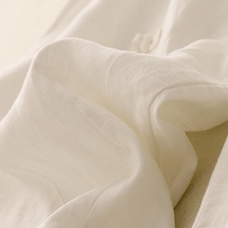 Pantalones harén de lino y algodón para mujer, informales, con diseño de botones de rana, de Buddha Stones, de largo 7-8 y bolsillos - image 8