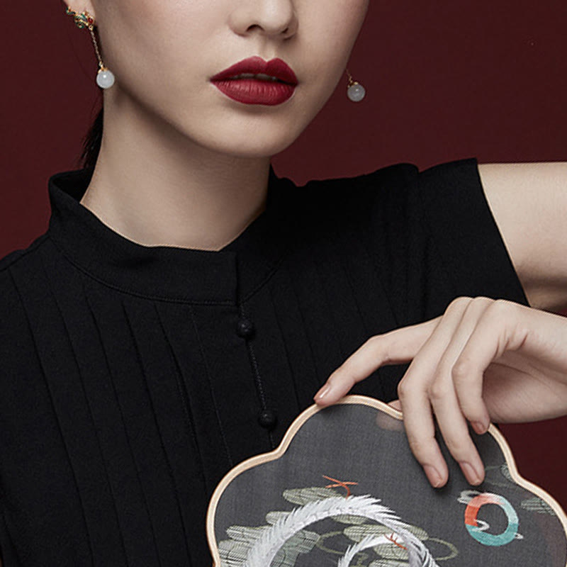 • Material: jade blanco, oro chapado en cobre, ágata roja.