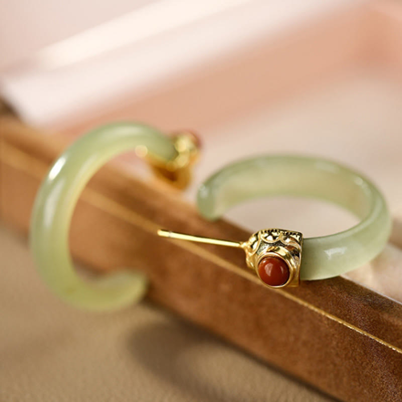 Buddha Stones Pendientes curvos de jade hetiano de plata de ley 925 con la palabra "prosperidad" - image 20