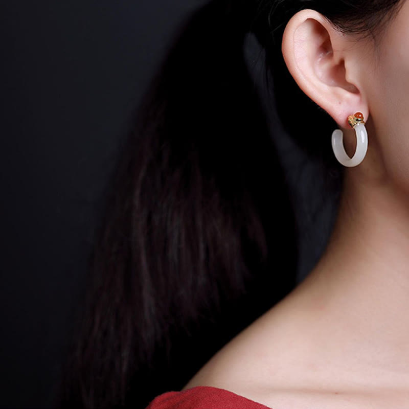 Buddha Stones Pendientes curvos de jade hetiano de plata de ley 925 con la palabra "prosperidad" - Jade blanco (postes de plata de ley 925) - image 9