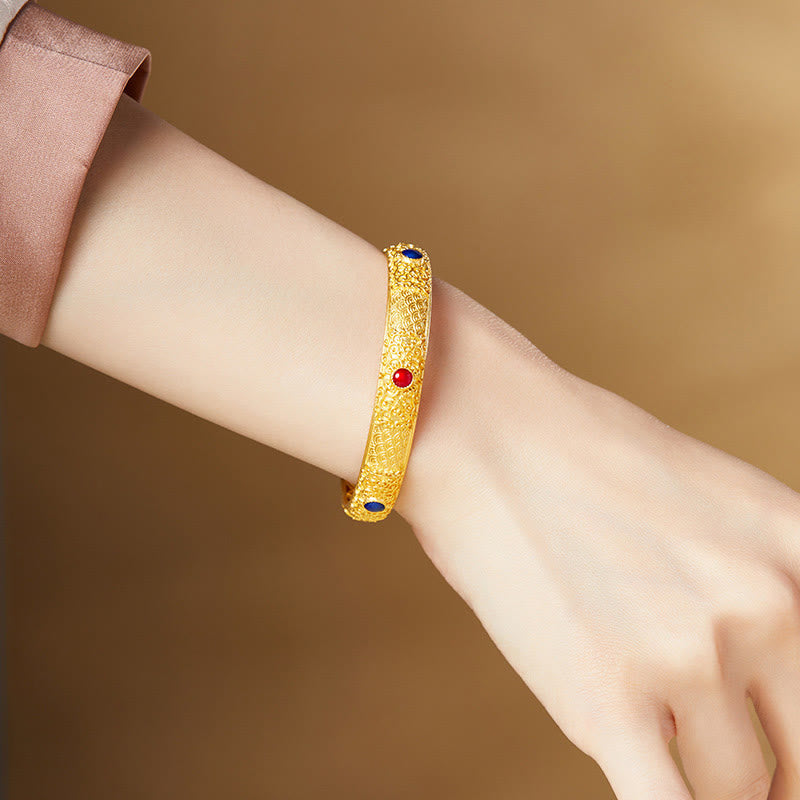 Pulsera de la suerte con diseño de nubes auspiciosas de plata de ley 999 vintage con piedras de Buda, brazalete BS 1