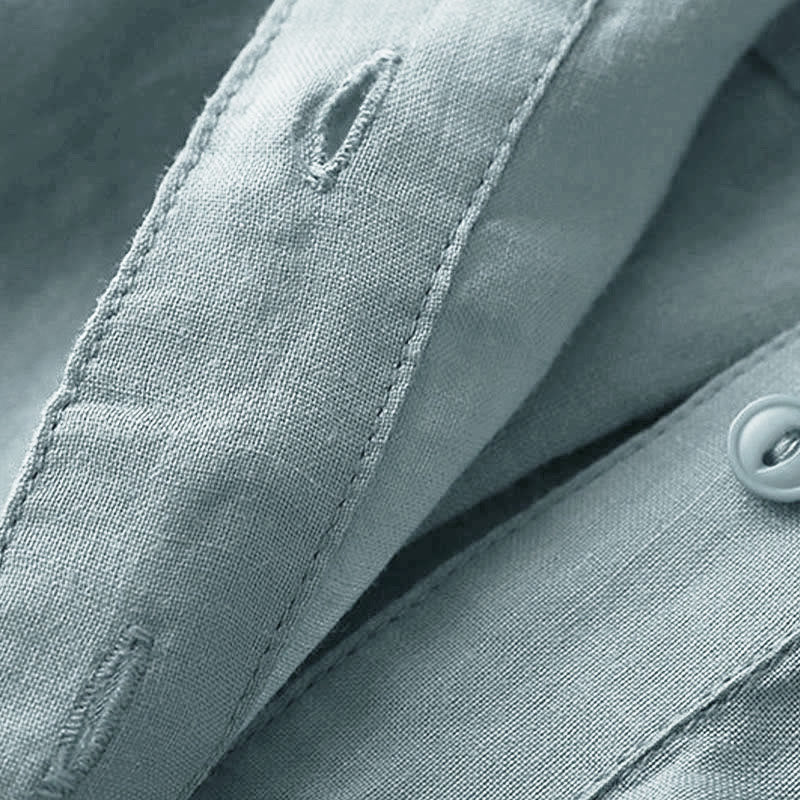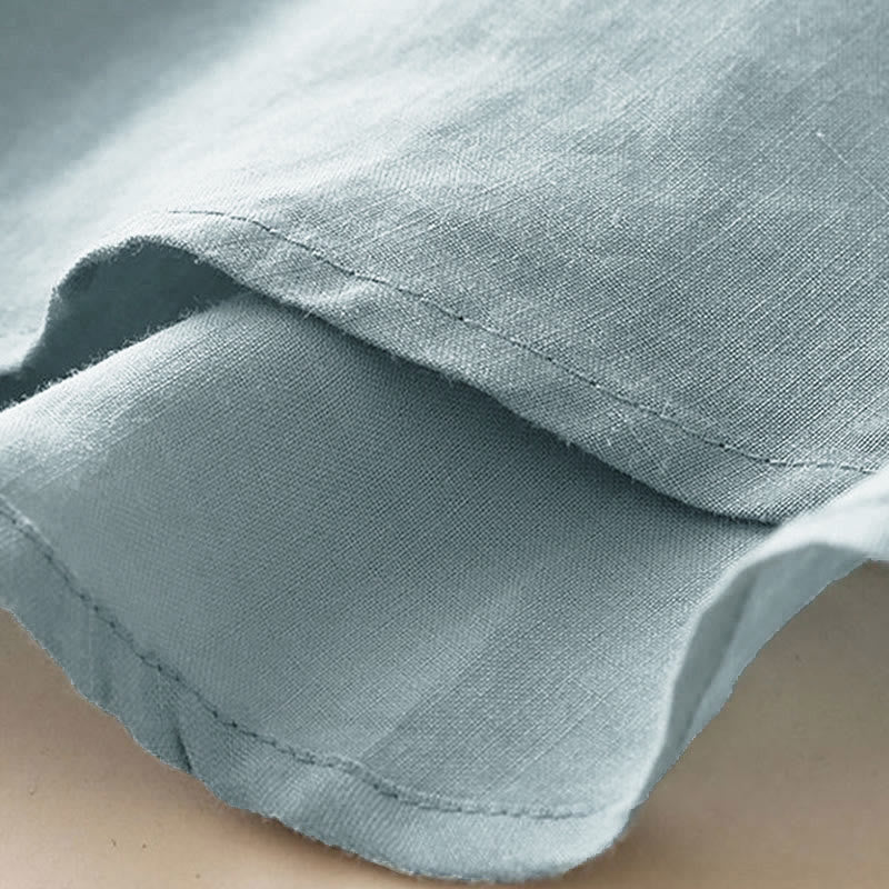 Camisa de lino y algodón lisa con diseño de manga tres cuartos y escote en V para mujer de Buddha Stones - image 9