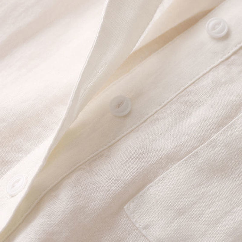 Camisa de lino y algodón lisa con diseño de manga tres cuartos y escote en V para mujer de Buddha Stones - image 15