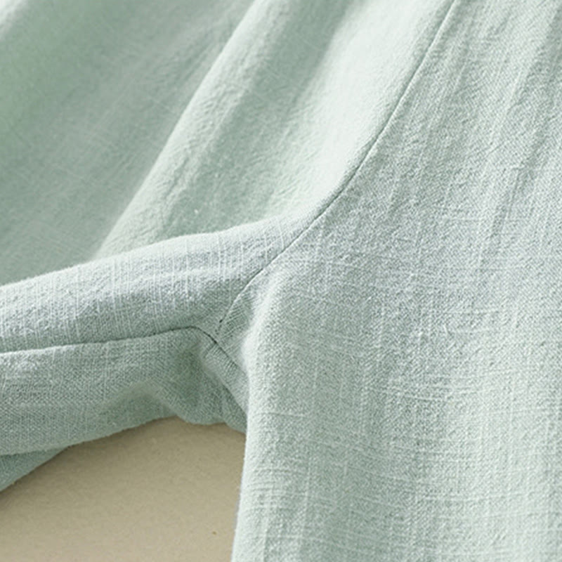 Pantalones de lino y algodón con cintura elástica, versátiles, informales, de color liso, para mujer, con bolsillos , de Buddha Stones - image 9