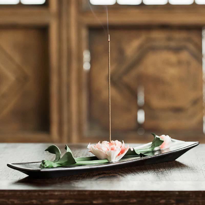 Quemador de incienso espiritual de cerámica con flor de rosa y peonía de loto